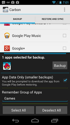 Helium lets you backup your apps and data to your SD card or cloud storage. With