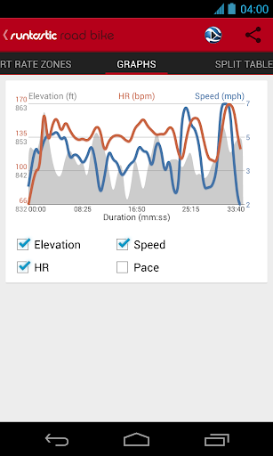 * Share your cycle route and accomplishments on Google+, Facebook, Twitter, and via e-mail