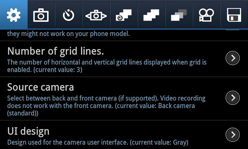 - Time-lapse: record time-lapse picture series (Android 3.0+: record time-lapse videos too)